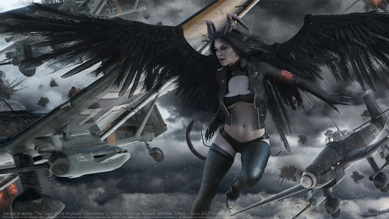 Series of works "The Soul of the Airplane" Demoness © Dmitry Hibikirus, software DAZ Studio, Photoshop