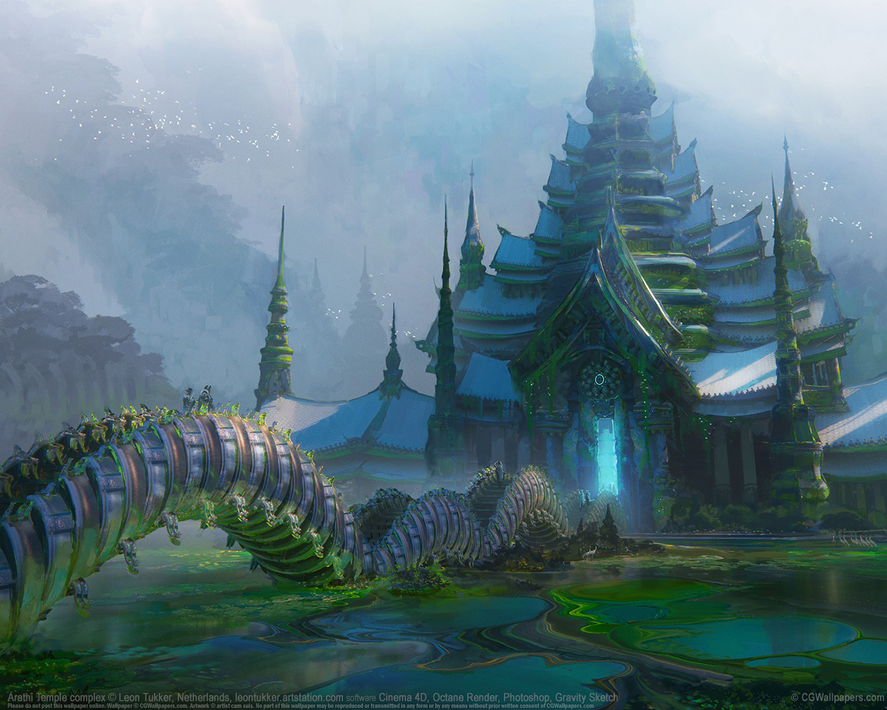 Arathi Temple complex © Leon Tukker, Netherlands software Cinema 4D, Octane Render, Photoshop, Gravity Sketch
