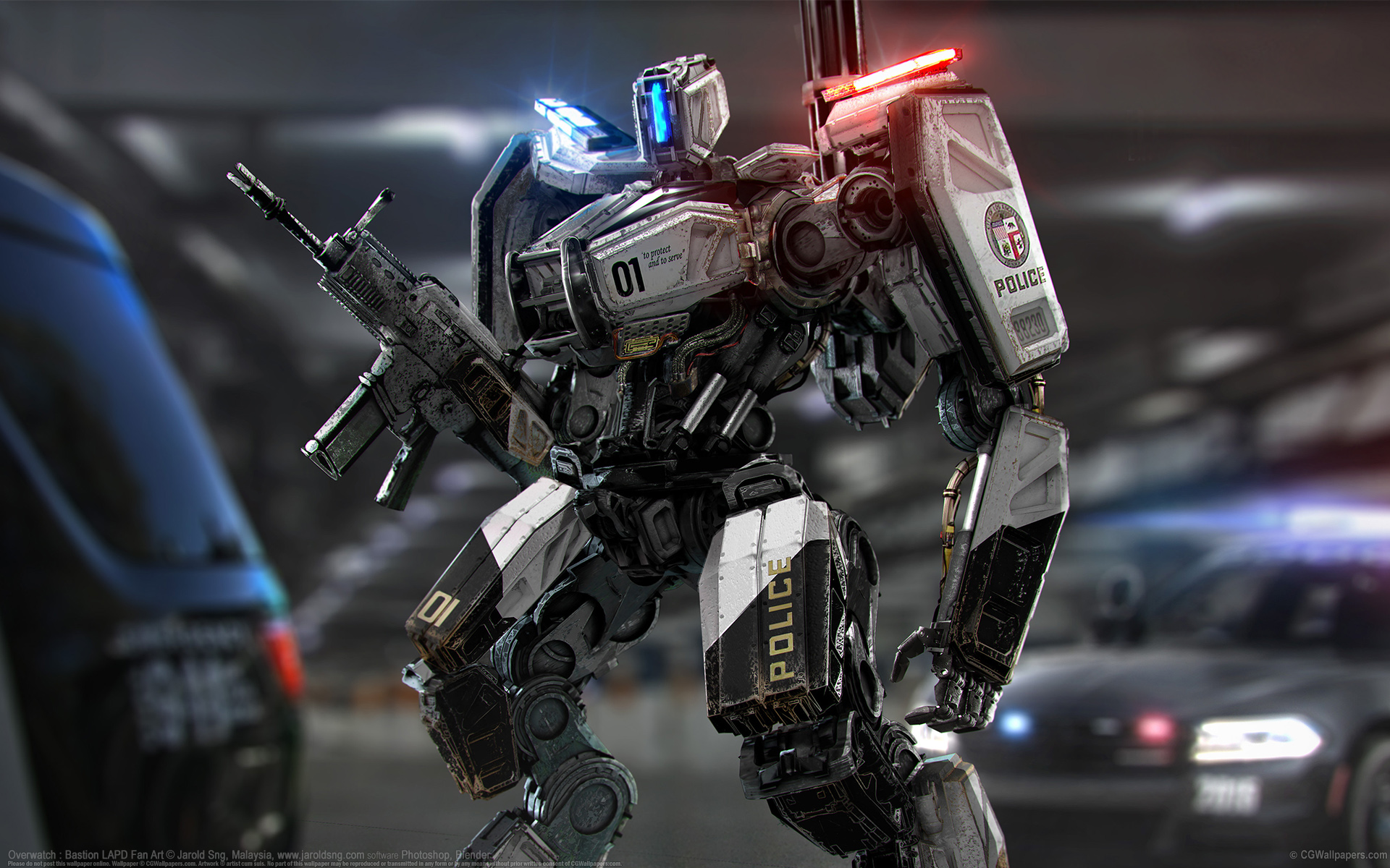 Overwatch : Bastion LAPD Fan Art © Jarold Sng, Malaysia software Photoshop, Blender
