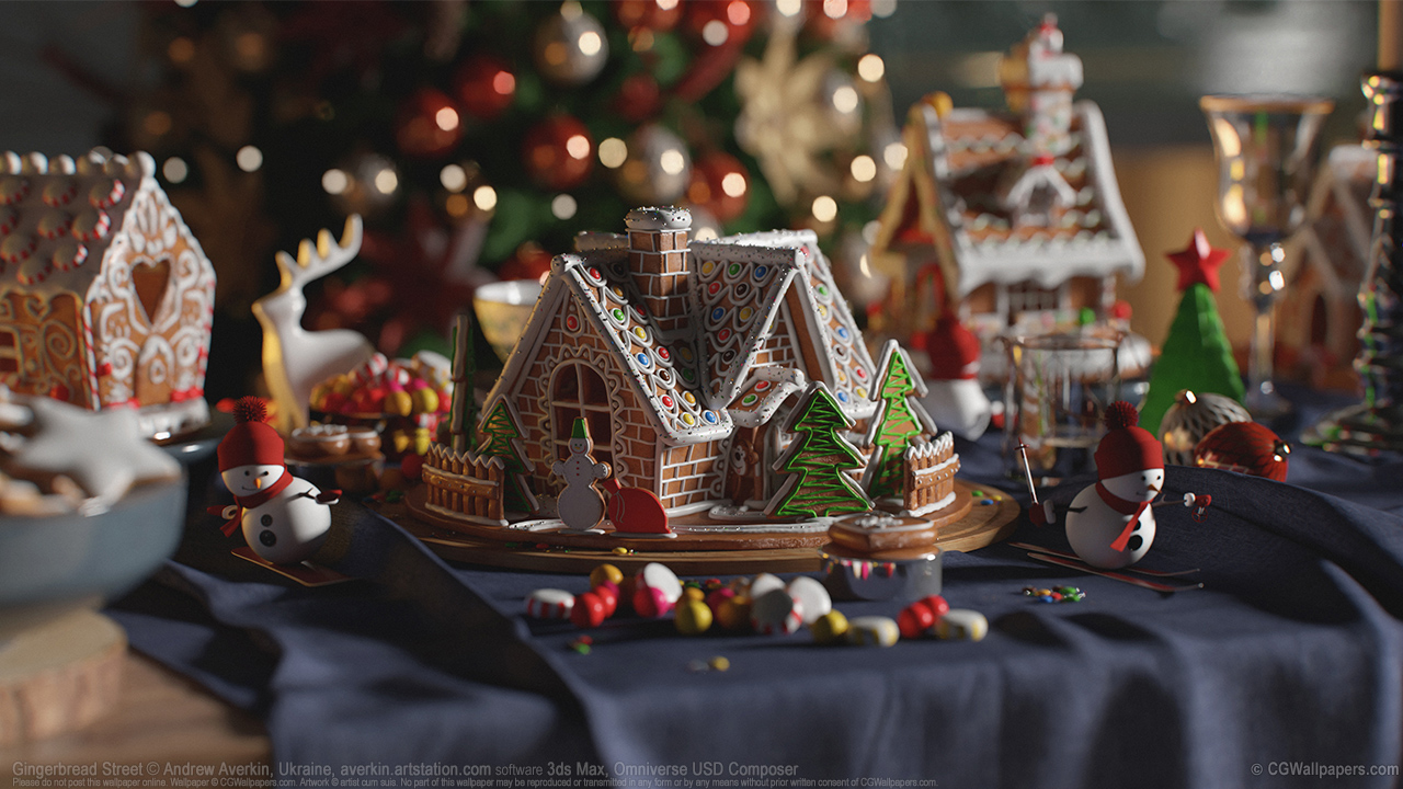 Gingerbread Street © Christmas Wallpapers, Mixed software 3ds Max, Omniverse USD Composer